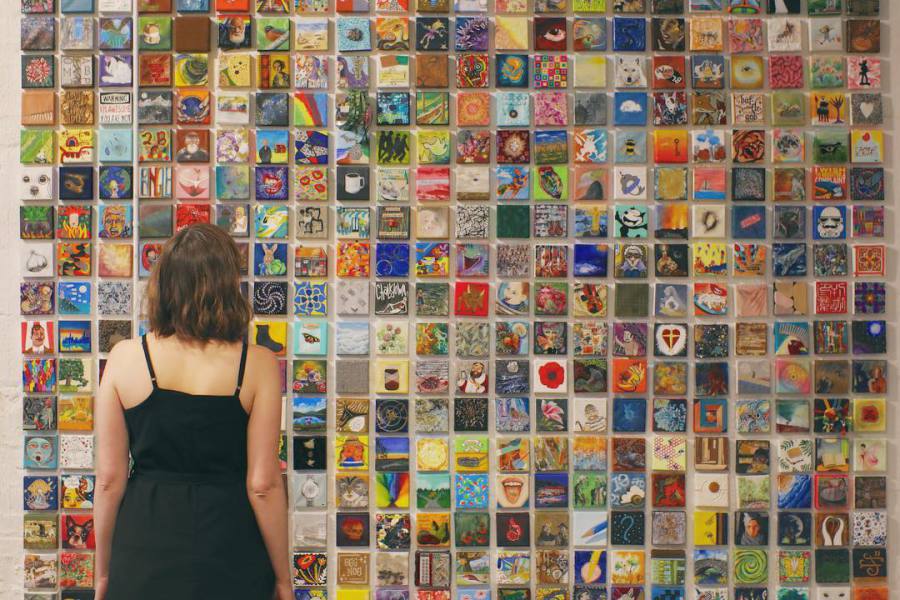 The Canvas Project is a community art project created by the Brooklyn Art Library. Participants of all ages and from all over the globe were sent a 4x4 inch blank canvas and an interesting or unusual word prompt to inspire their creation. The words were crowd-sourced from the BAL arts community. My word: "Cowabunga!" All of the canvases were digitized and compiled into "A Visual Encyclopedia." The encyclopedia is 184 pages, featuring over 1100 visual interpretations of words. The book is filled with inspiration, humor, and global perspectives. You can order one here. After the show, the original canvases will be swapped among the participants, with a BAL librarian making the choices for the exchanges.